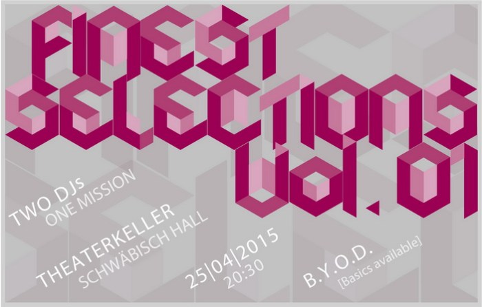 Seit 2015 veranstalten wir die Reihe „FINEST SELECTION“ einmal monatlich (in der Regel jeden 2. Freitag des Monats) im Theaterkeller Schwäbisch Hall (Eingang neben dem Barfüsser).